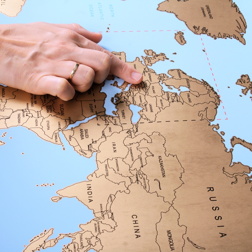 That’s very simple: after each trip to a new place, scratch off its corresponding area on the map and think back to all the great feelings that accompanied you while discovering it. You will feel just as if you were discovering it again! The Explorer’s Map is a must-have for everyone who travels around the world.